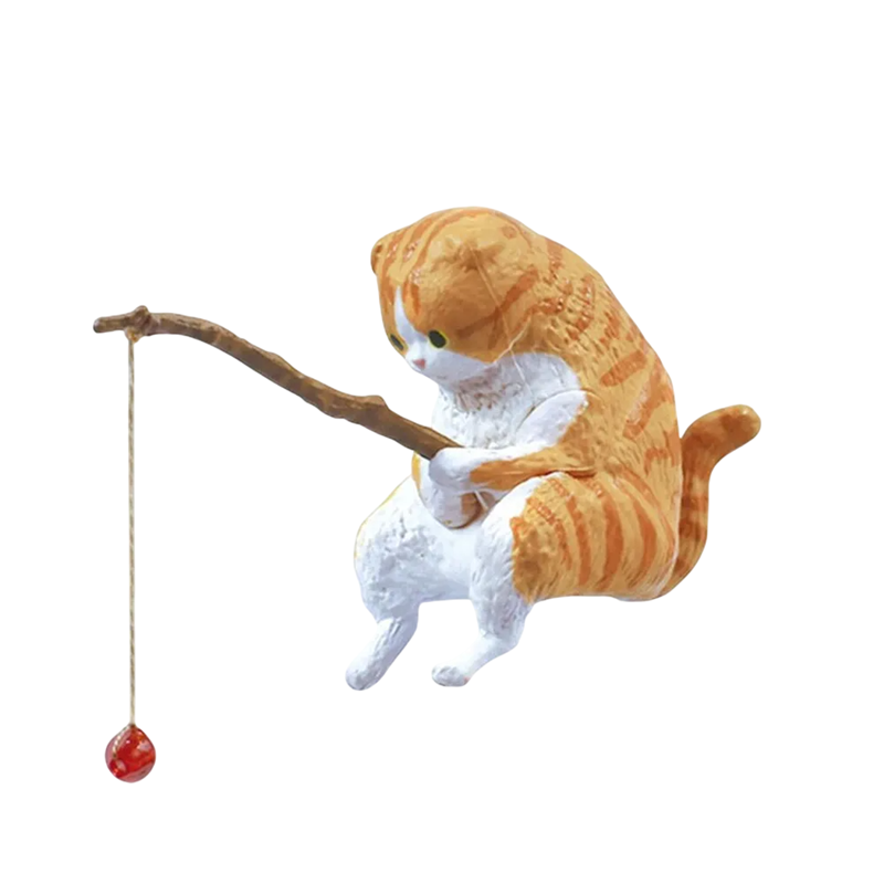 • Figurine animale de chat écossais à oreilles repliées roux avec canne à pêche
