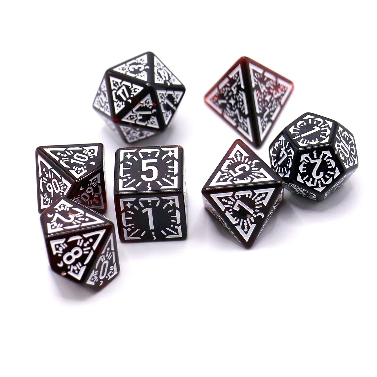 Dés de jeu transparents 7 pcs Dés de fantasy rouge foncé pour Donjons et Dragons RPG jeux de société et soirées de jeu