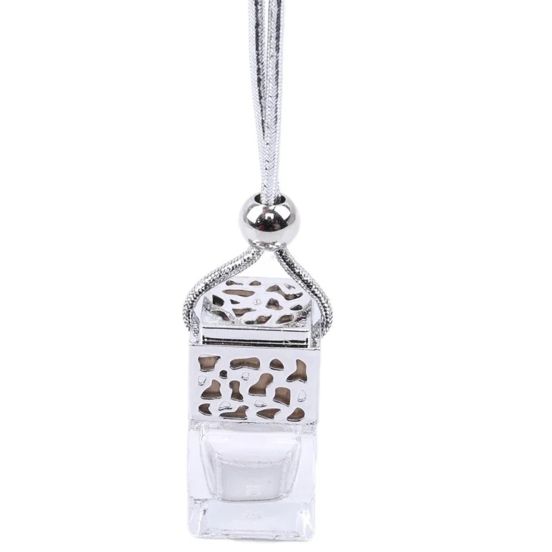 Élégant flacon en verre pour huile ou parfum. Désodorisant à suspendre et décoration de voiture à la fois. Disponible en 3 versions. Description complète