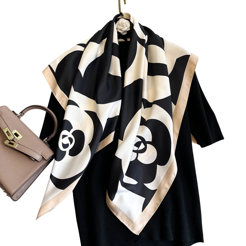 Écharpe carrée pour femmes 90 x 90 cm Motif floral Accessoire léger et élégant en polyester Écharpe stylée avec un motif floral délicat pour un port quotidien et festif