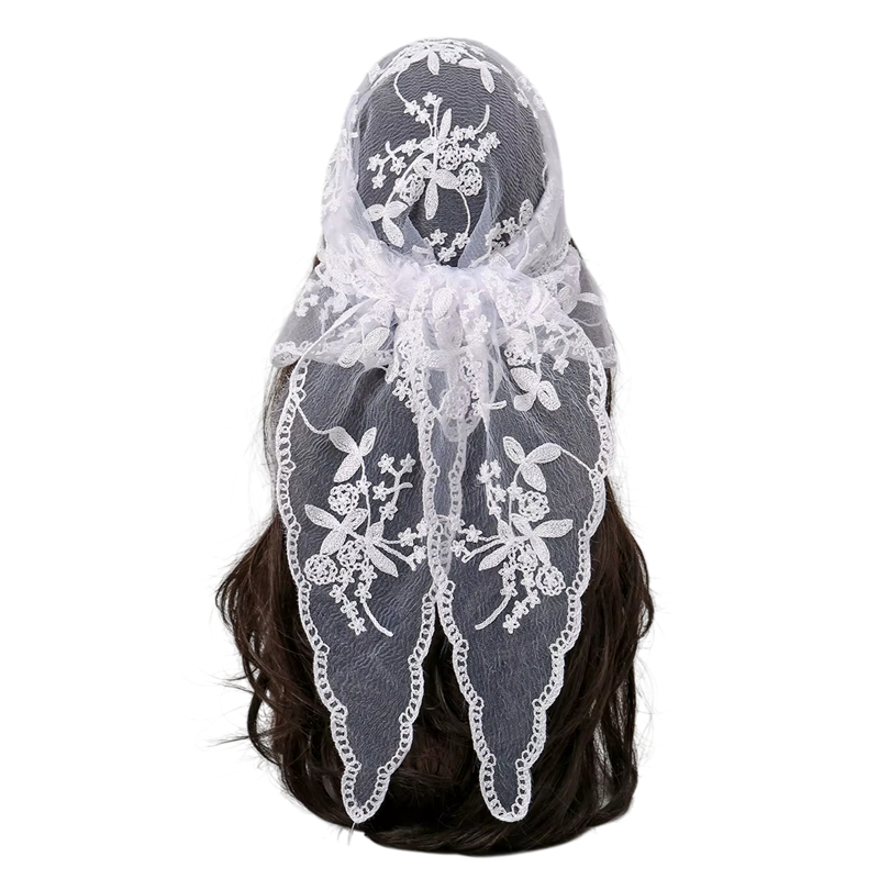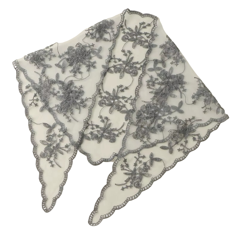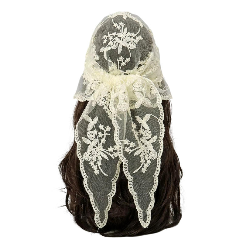 Écharpe en dentelle légère avec un motif floral, un accessoire élégant pour la tête, le cou et les cheveux, adapté à toutes les saisons. Description complète