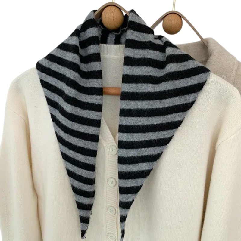 Écharpe pour femmes en forme de triangle Écharpe rayée chaude en polyester, laine, acrylique, viscose et nylon Accessoire de mode moderne pour l'automne et l'hiver