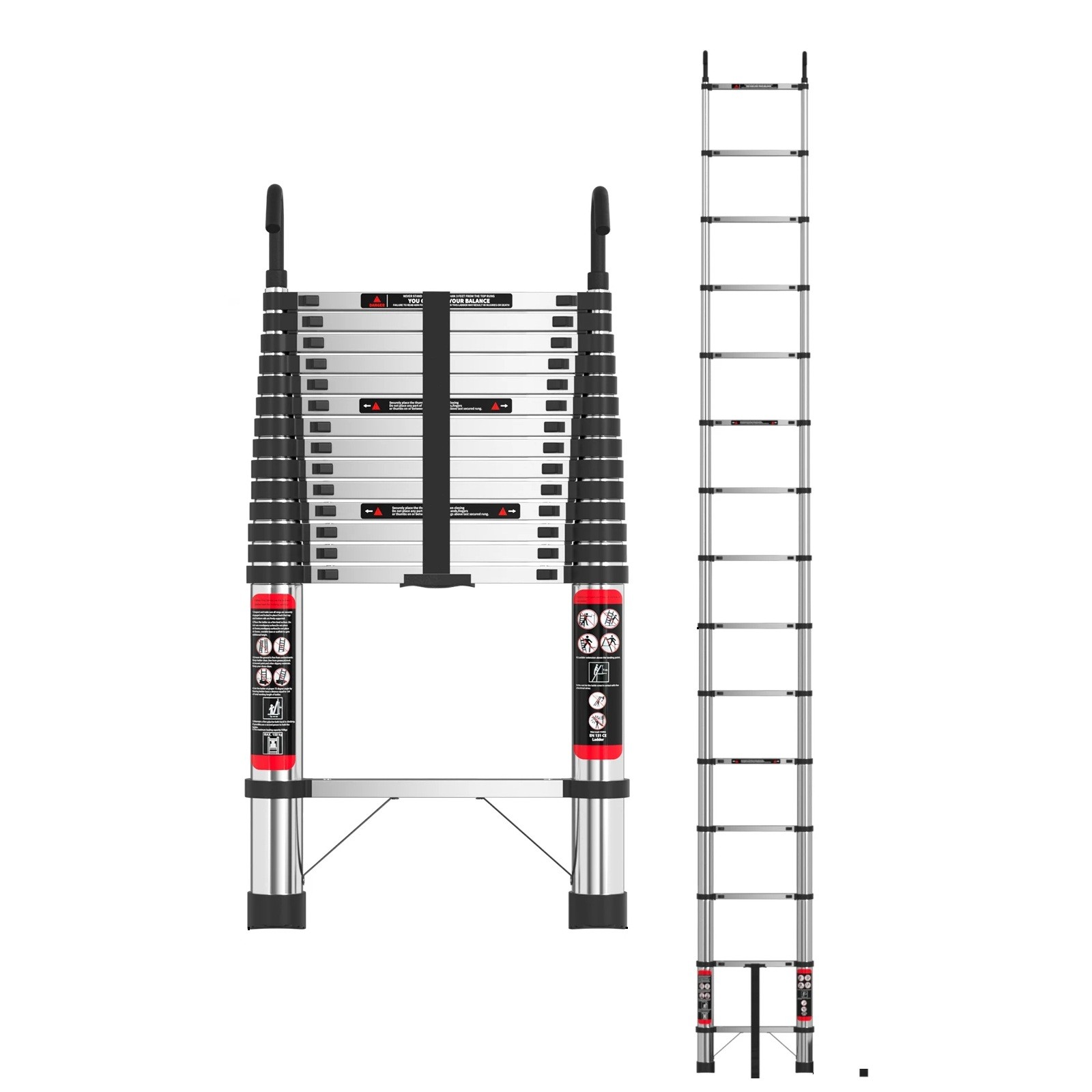 Échelle télescopique 5 m Acier inoxydable Structure pliable 12 échelons Charge maximale 150 kg Verrous de sécurité et crochets