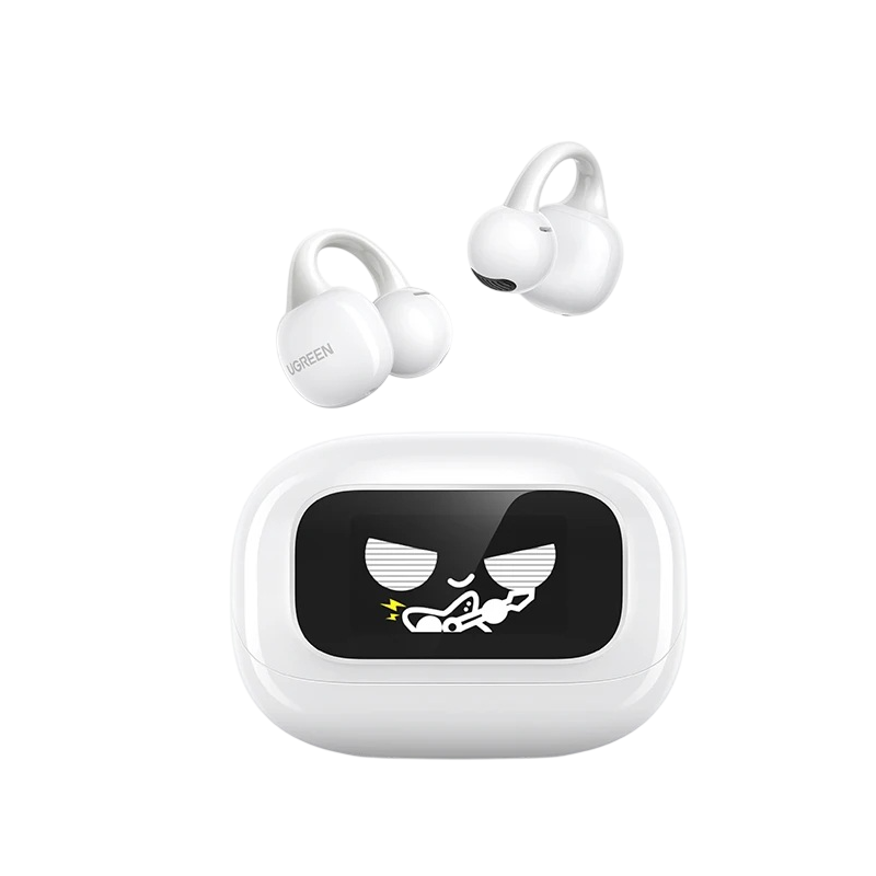 Les UGREEN ClipBuds Magic en blanc combinent un design compact avec des fonctionnalités modernes pour une écoute sans fil. L'écran LCD tactile permet un contrôle facile du volume, du passage des pistes et de l'affichage de l'état de la batterie. Les écouteurs sont conçus avec un clip ergonomique qui se fixe fermement à l'oreille et assure un port stable lors des mouvements ou du sport. La technologie Bluetooth offre une connexion stable et un transfert audio de qualité avec une faible latence.