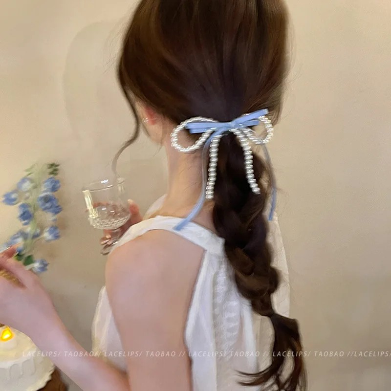 Élégante barrette à cheveux en perles avec nœud et ruban