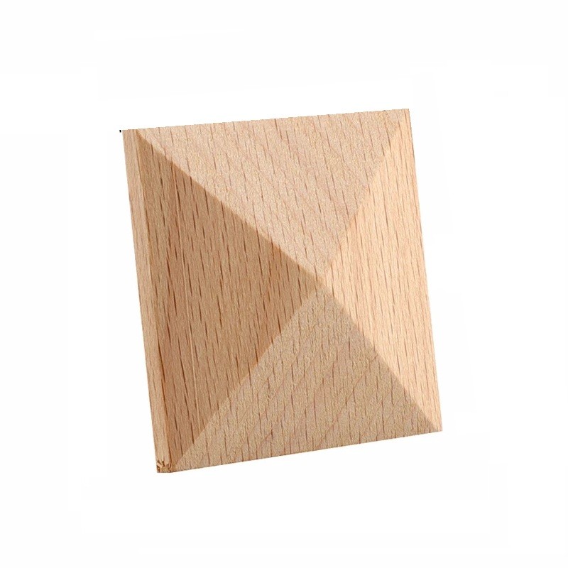Élément décoratif en bois carré avec relief pyramidal 4x4 cm en bois massif naturel marron pour meubles et intérieur