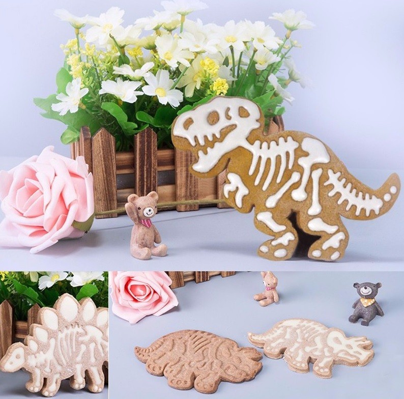 La partie supérieure de l'emporte-pièce crée la forme du dinosaure sous pression, et la décoration sera d'autant plus facile.