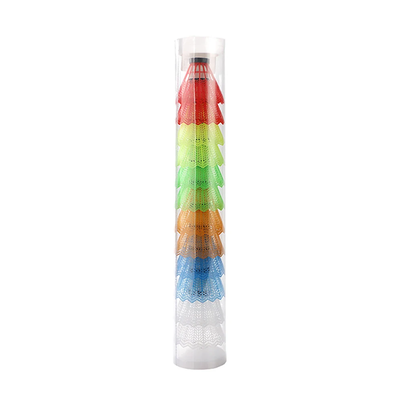 Ensemble coloré de volants adapté aux matchs et à l'entraînement de badminton, tête en plastique résistant, construction légère et vol fluide. Description complète