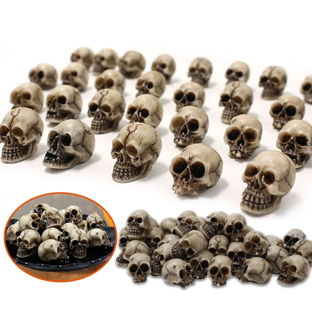 Ensemble de 20 mini crânes 1 x 1,8 cm Résine Décoration pour diorama cimetière catacombes ossuaire scène d'horreur