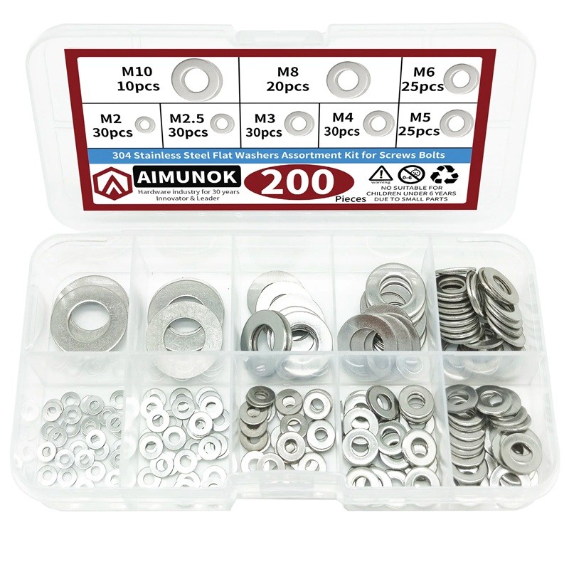 Ensemble de 200 pièces de rondelles plates en acier inoxydable 304 M2–M10 pour vis et écrous usage domestique et industriel
