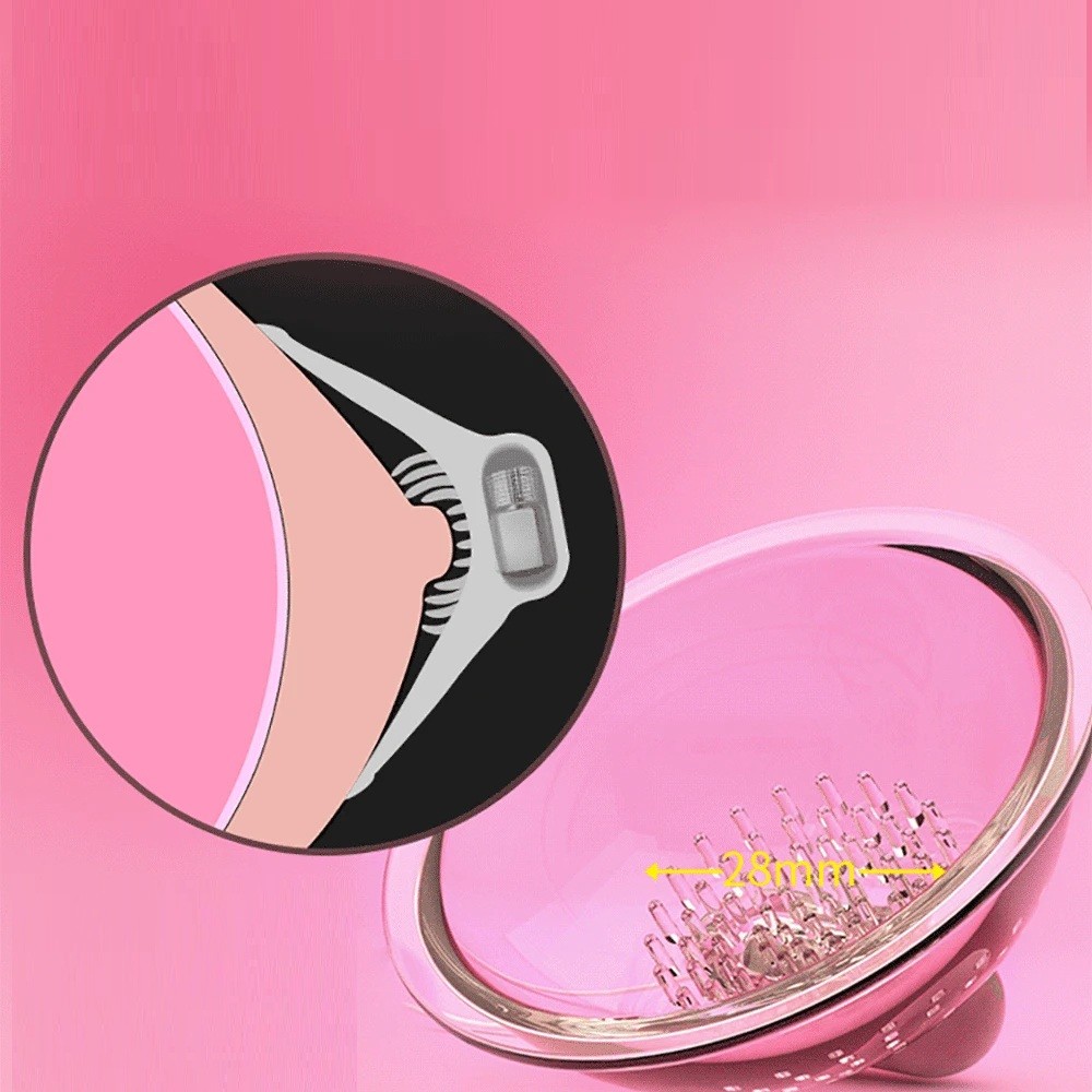 Cet ensemble unique contient 3 ventouses vibrantes – deux destinées aux mamelons et une pour la stimulation vaginale. Chaque ventouse possède à l'intérieur des picots doux, qui vibrent et tournent doucement autour des zones les plus sensibles lors de l'activation. L'espace intérieur de 28 mm de diamètre enveloppe la peau et crée un léger vide, tandis que les vibrations stimulent les terminaisons nerveuses. La sensation résultante rappelle un léger picotement, des impulsions électriques ou des démangeaisons, qui augmentent progressivement en intensité.