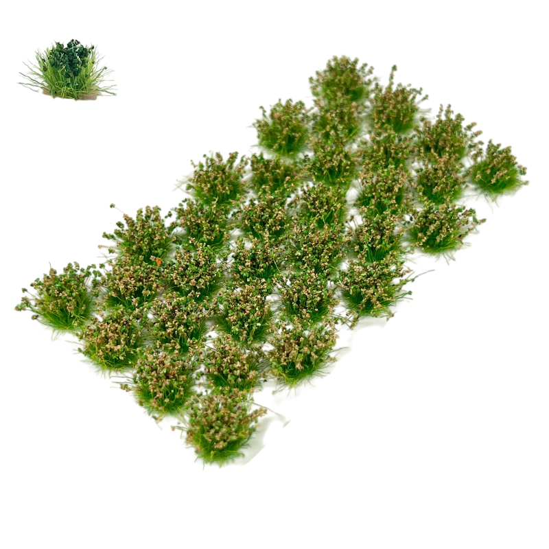 Ensemble de 32 touffes d'herbe vertes de taille 8 à 10 mm et de hauteur 9 mm pour un complément réaliste du paysage miniature et des scènes détaillées. Description complète