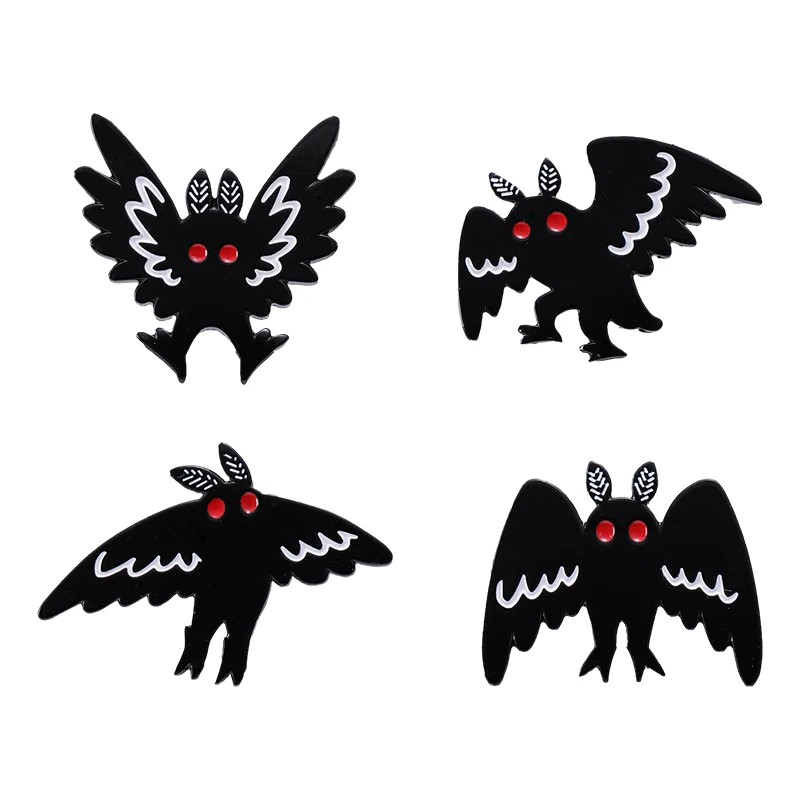 Les hiboux sont représentés dans une finition sombre avec des yeux rouges vifs et des éléments blancs sur les ailes. Ce contraste assure une bonne visibilité du motif même sur différents types de vêtements ou d'accessoires. Le style est minimaliste, ce qui permet de les combiner facilement avec d'autres éléments sans effet perturbateur.