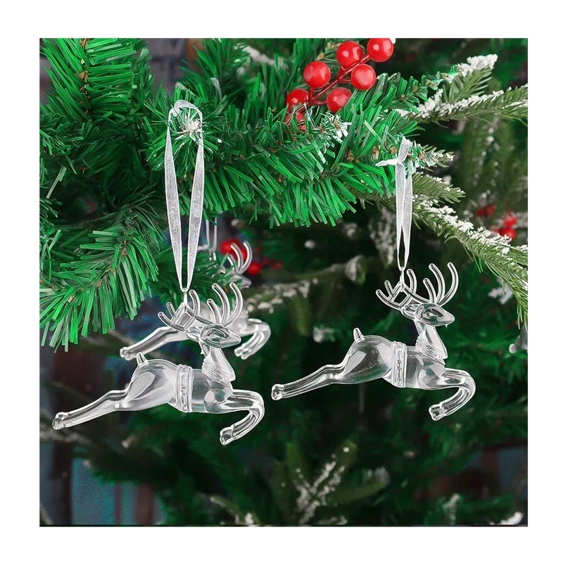 Les décorations en acrylique transparent en forme de rennes reflètent délicatement la lumière, idéales pour le sapin, les fenêtres et les fêtes d'hiver, et soulignent l'atmosphère de Noël. Description complète