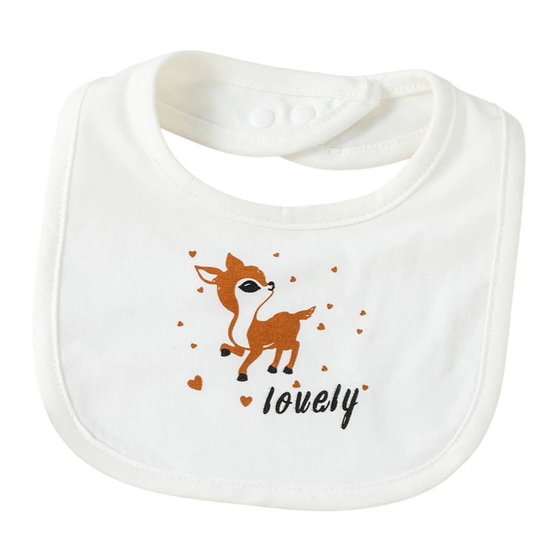 Ensemble de 4 pièces pour enfant avec imprimé animalier Manches longues Col rond Boutons Bavoir Bonnet Gants Coton Polyester Élasthanne