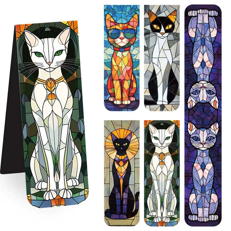 Ensemble de 5 pcs marque-page magnétique 6 x 2 cm en forme de chat motif illustratif en mosaïque