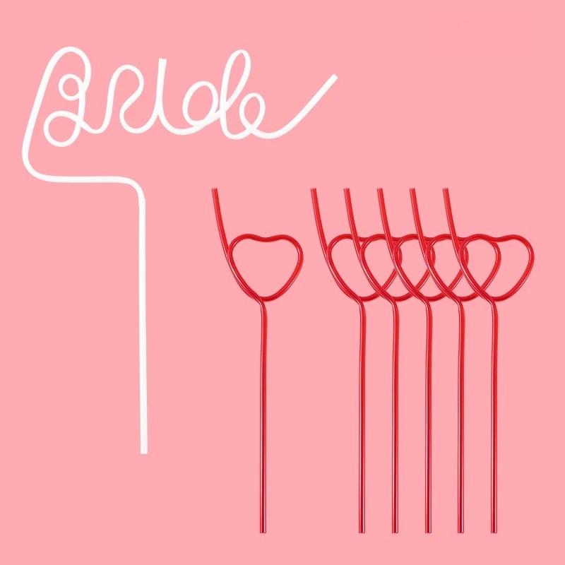 • 6× paille rouge avec cœur (forme de cœur différente)