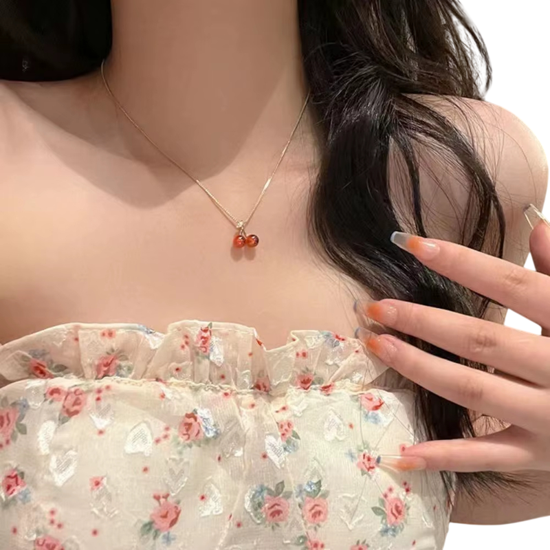 Cet ensemble romantique avec un motif de cerises rouges et des zircons illuminera chaque tenue et apportera un look ludique et féminin. Description complète
