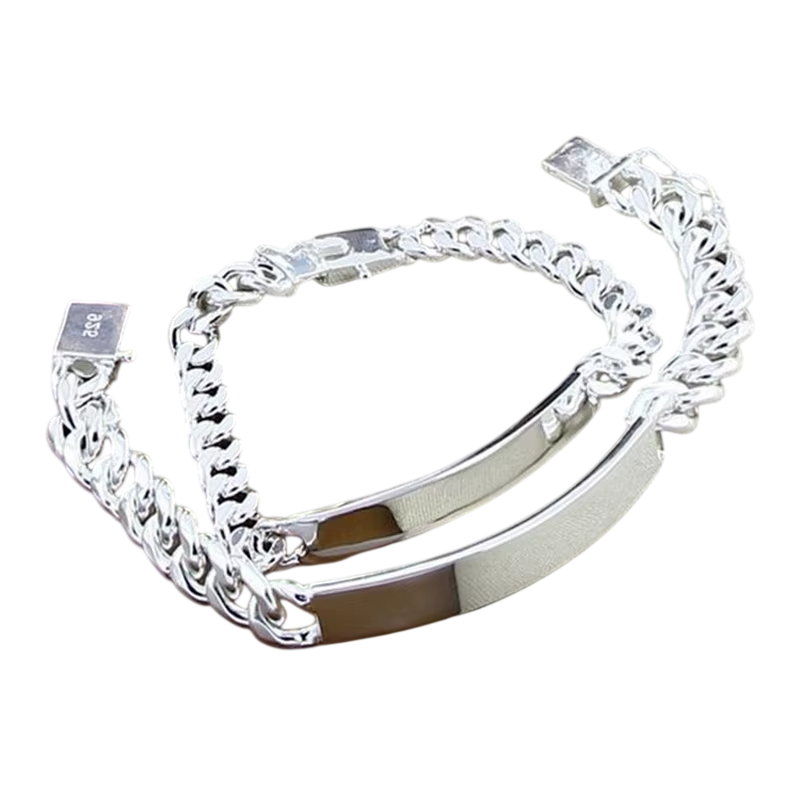 Le design lisse de la chaîne crée un effet subtil mais marqué, qui souligne le style personnel du porteur. Les bracelets peuvent être portés ensemble pour un look plus prononcé ou séparément pour une élégance discrète. Grâce à leur design universel, ils sont parfaits comme cadeau pour un anniversaire, des fiançailles ou un mariage. La qualité de fabrication assure un confort de port tout au long de la journée. Si vous recherchez un bijou en argent moderne et sophistiqué avec un éclat durable, cet ensemble représente un investissement intemporel dans l'élégance qui s'accorde avec toutes les tenues.