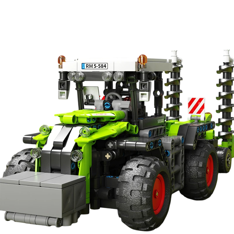 Grand ensemble de construction avec 1481 pièces permettant de construire un tracteur, un cultivateur, une remorque et une grue. Jouet idéal pour les enfants à partir de 6 ans qui adorent la technique. Description complète