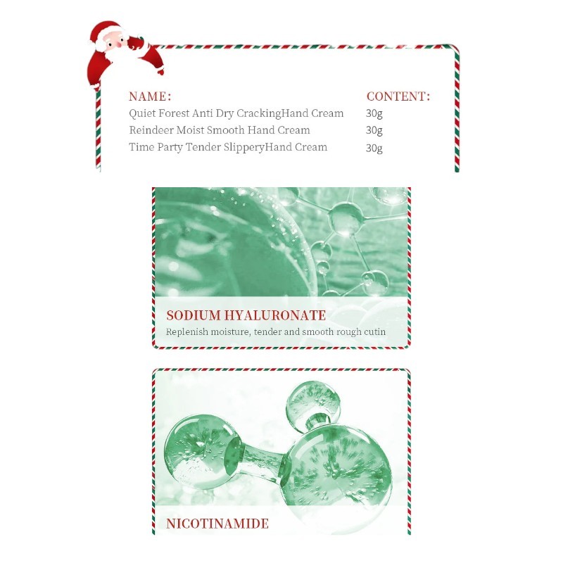 Cette ensemble de Noël de crèmes hydratantes pour les mains offre une solution pratique et élégante pour le soin quotidien de la peau des mains. Il contient cinq crèmes individuelles de 30 g, idéales pour le sac à main, le sac à dos ou en voyage. La texture légère s'étale facilement et s'absorbe rapidement, ne laissant pas de sensation grasse. Grâce à son parfum agréable, l'utilisation de la crème est confortable même lors d'applications fréquentes tout au long de la journée. L'ensemble est parfait comme collection de cadeaux de Noël pour les femmes et les hommes.