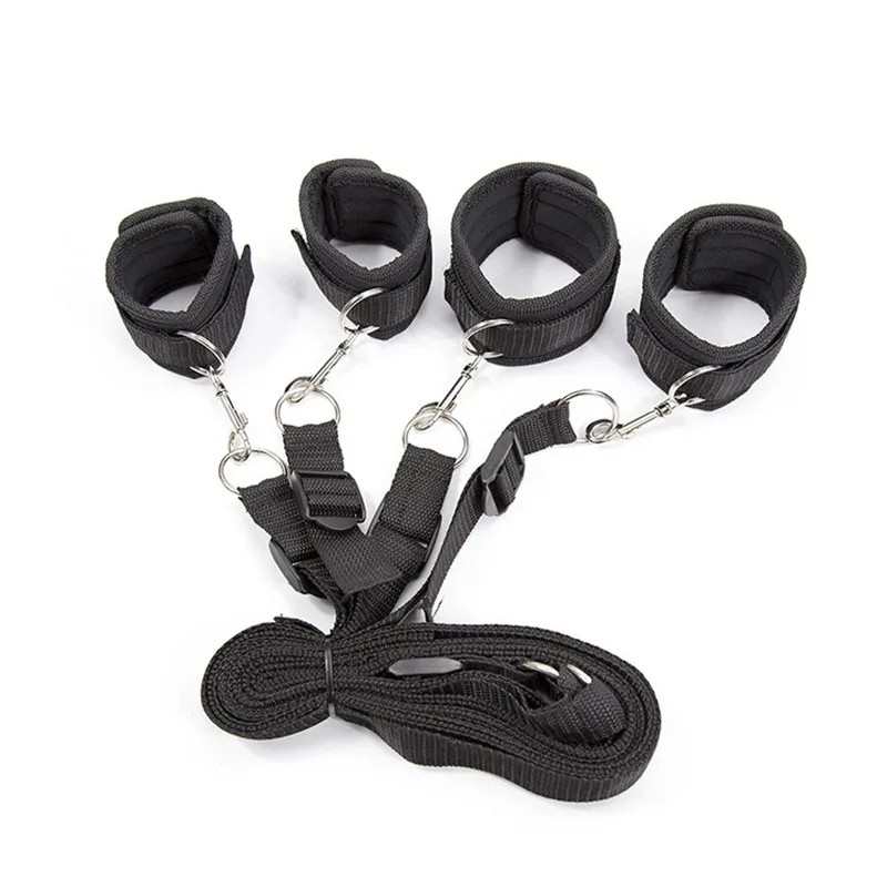 Ensemble de menottes et de sangles pour jeux BDSM, liaison au lit, taille réglable, emballage discret pour confort et intimité