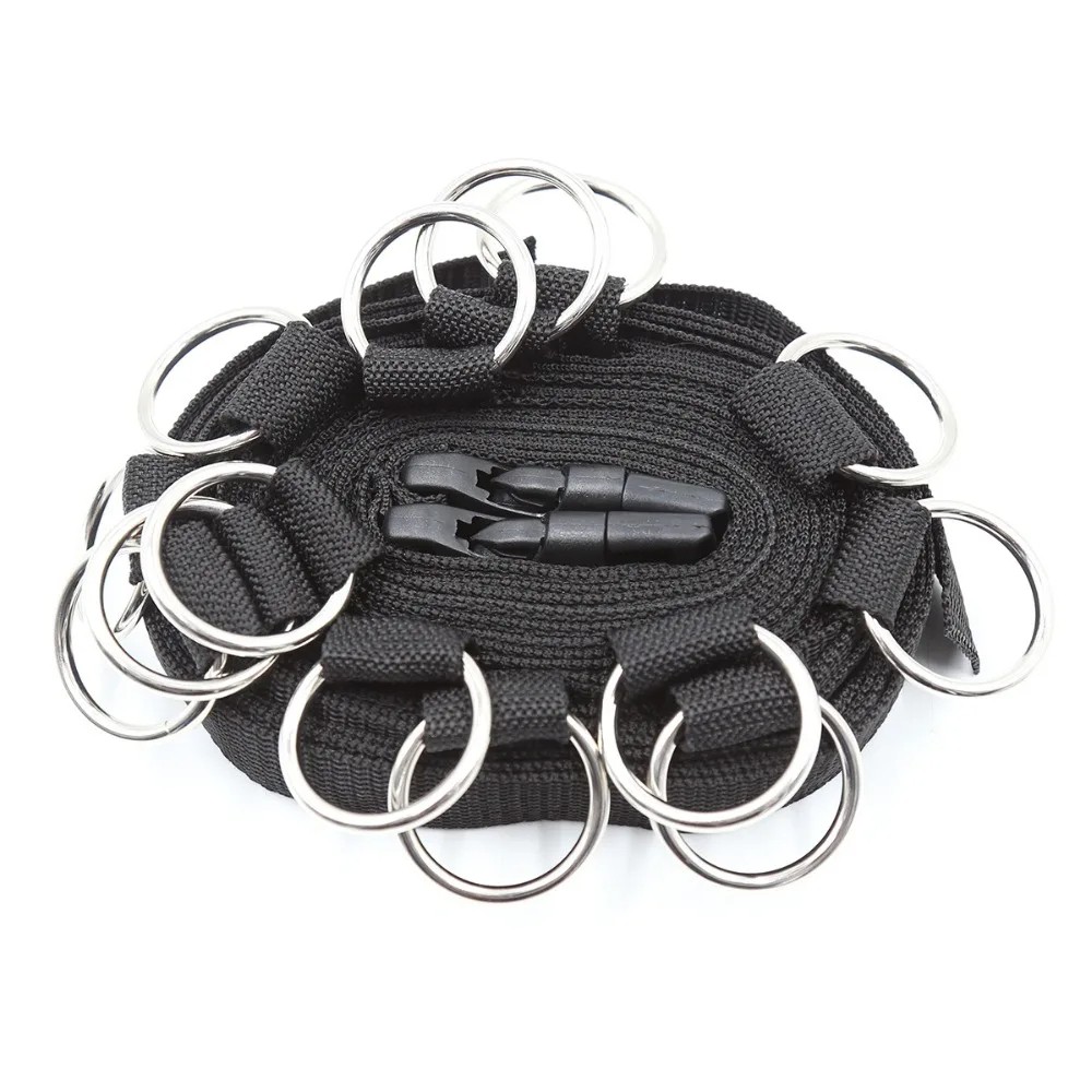 L'ensemble comprend : 1x longue sangle avec poignées, 4x menottes avec mousqueton à velcro