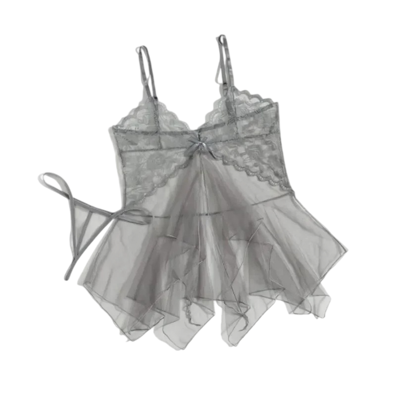 Ensemble de nuit léger pour femmes avec éléments en dentelle. Chemise et culottes en polyester de taille universelle pour un sommeil confortable. Description complète