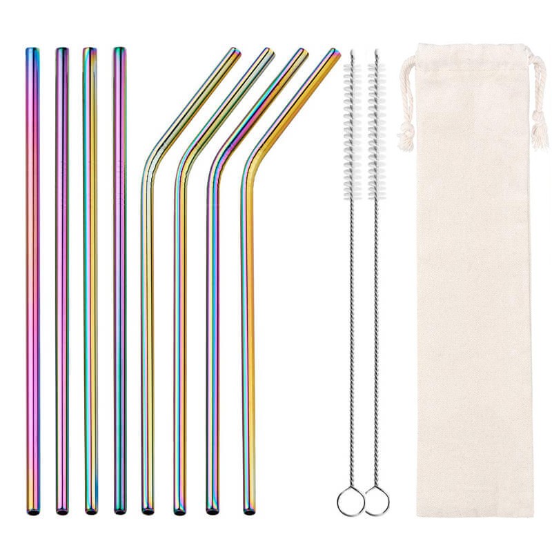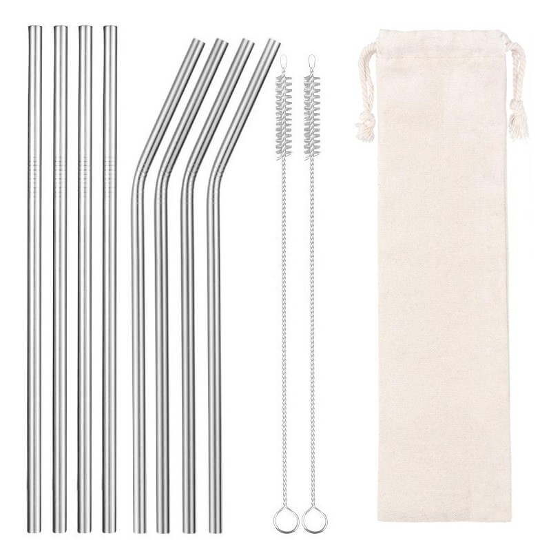 Ensemble de pailles en acier inoxydable avec étui 8 pcs