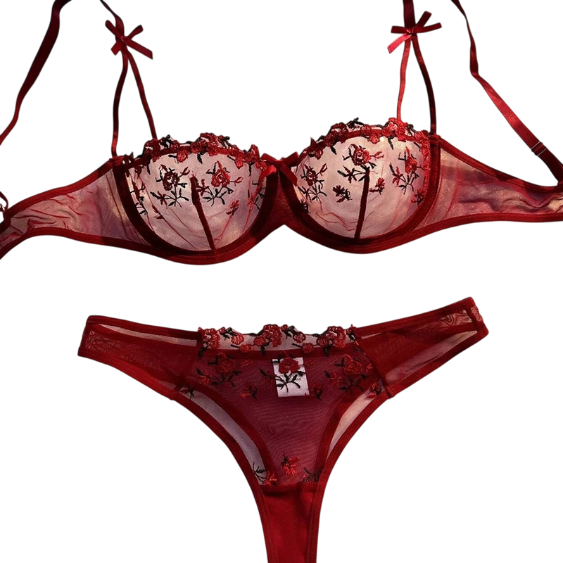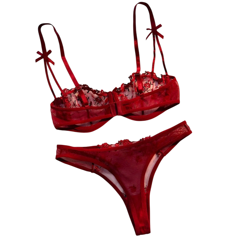 • Ensemble en dentelle pour femmes avec soutien-gorge et culottes