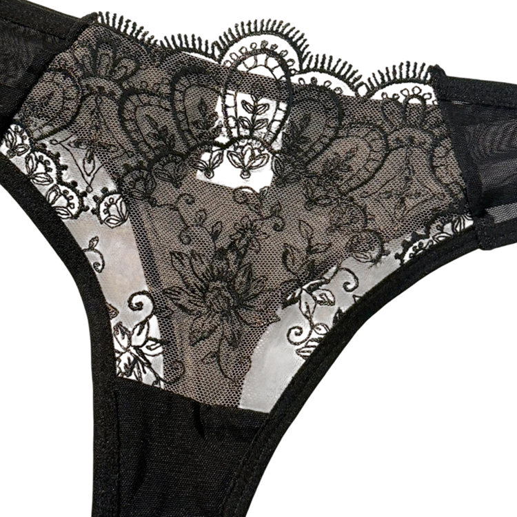 L'ensemble en dentelle avec broderie et maille légère offre confort et style pour un usage quotidien comme lingerie. Description complète