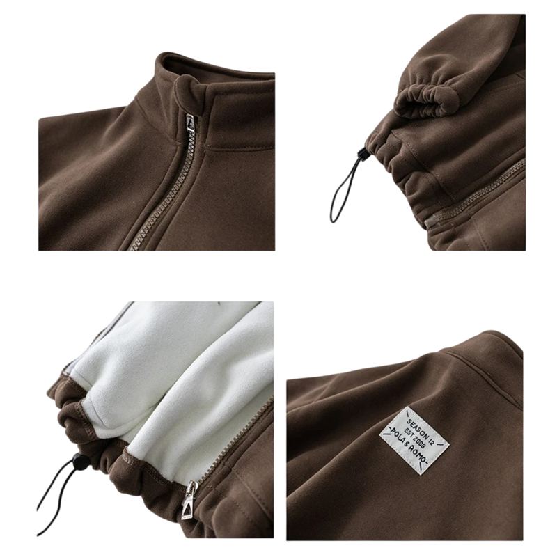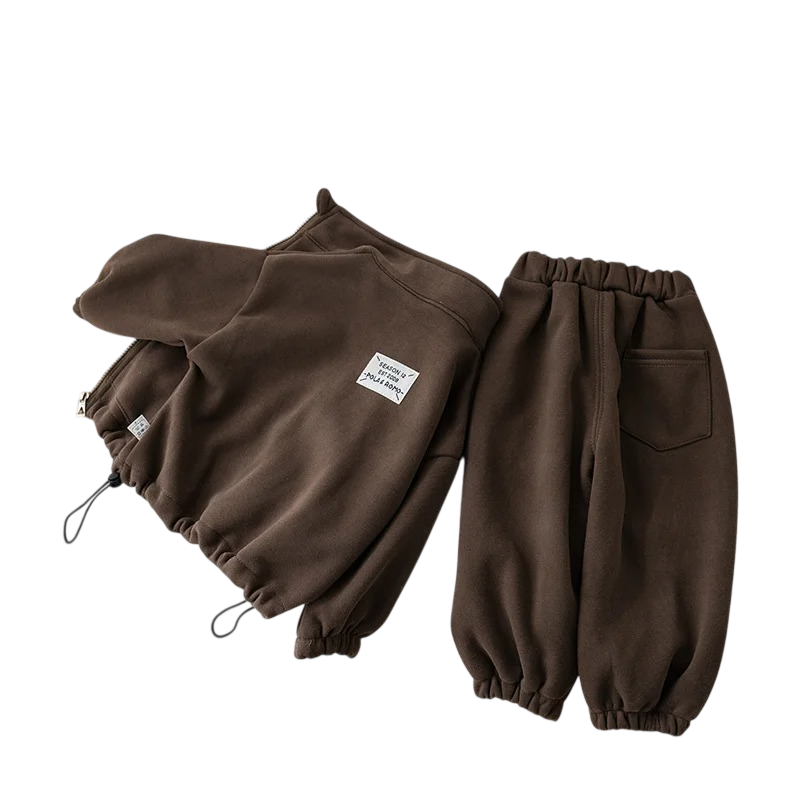 Le sweat à col roulé aide à protéger le cou du froid et la fermeture éclair permet un ajustement rapide selon la météo ou l'activité. Les pantalons sont équipés d'une taille élastique qui s'adapte bien à la silhouette de l'enfant, ainsi que de poches pratiques pour les petits objets. L'ensemble est un choix idéal pour les parents à la recherche de vêtements pratiques pour enfants capables de supporter un usage quotidien et un mouvement actif.