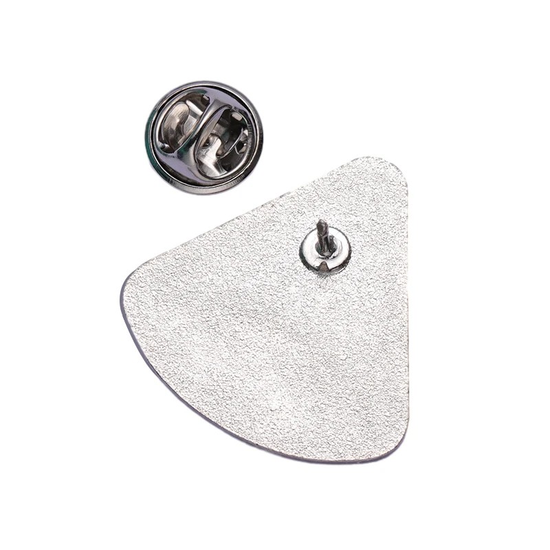 La combinaison de couleurs associe des nuances argentées et noires, qui soulignent l'apparence technique de l'insigne. Ce style contrasté permet une combinaison facile avec différents types de vêtements et d'accessoires. La forme triangulaire de l'épinglette donne au design global un aspect structuré et équilibré.
