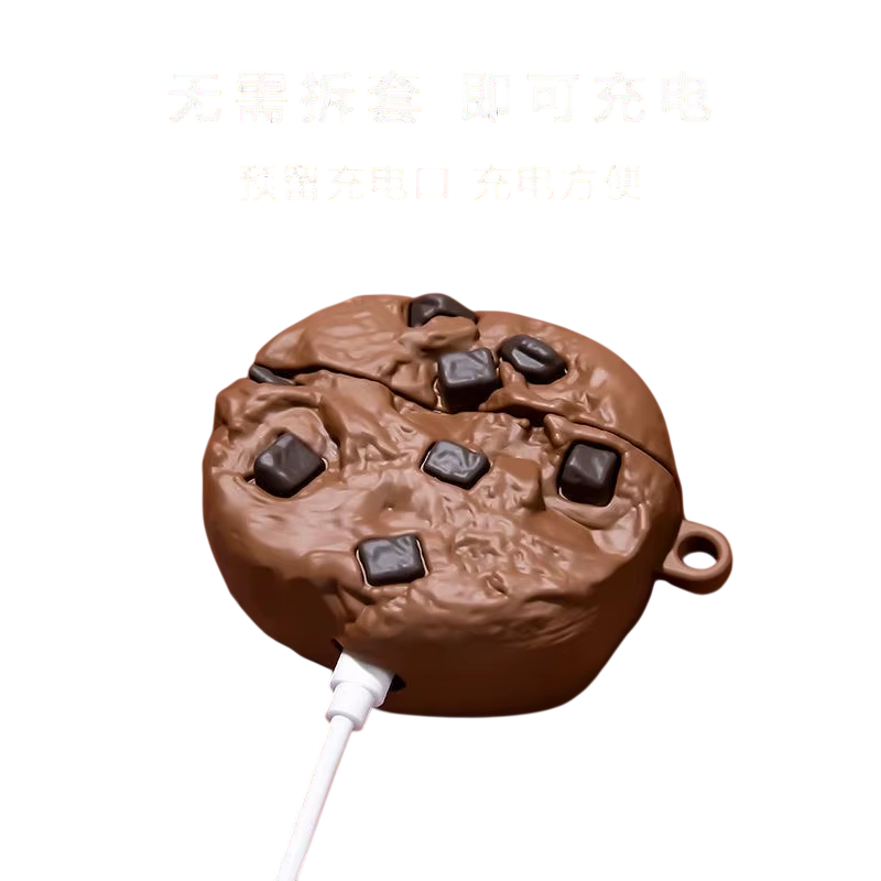 Étui pour AirPods Pro en forme de biscuit cookie au chocolat Étui de protection en silicone contre les chocs et la poussière pour un usage quotidien
