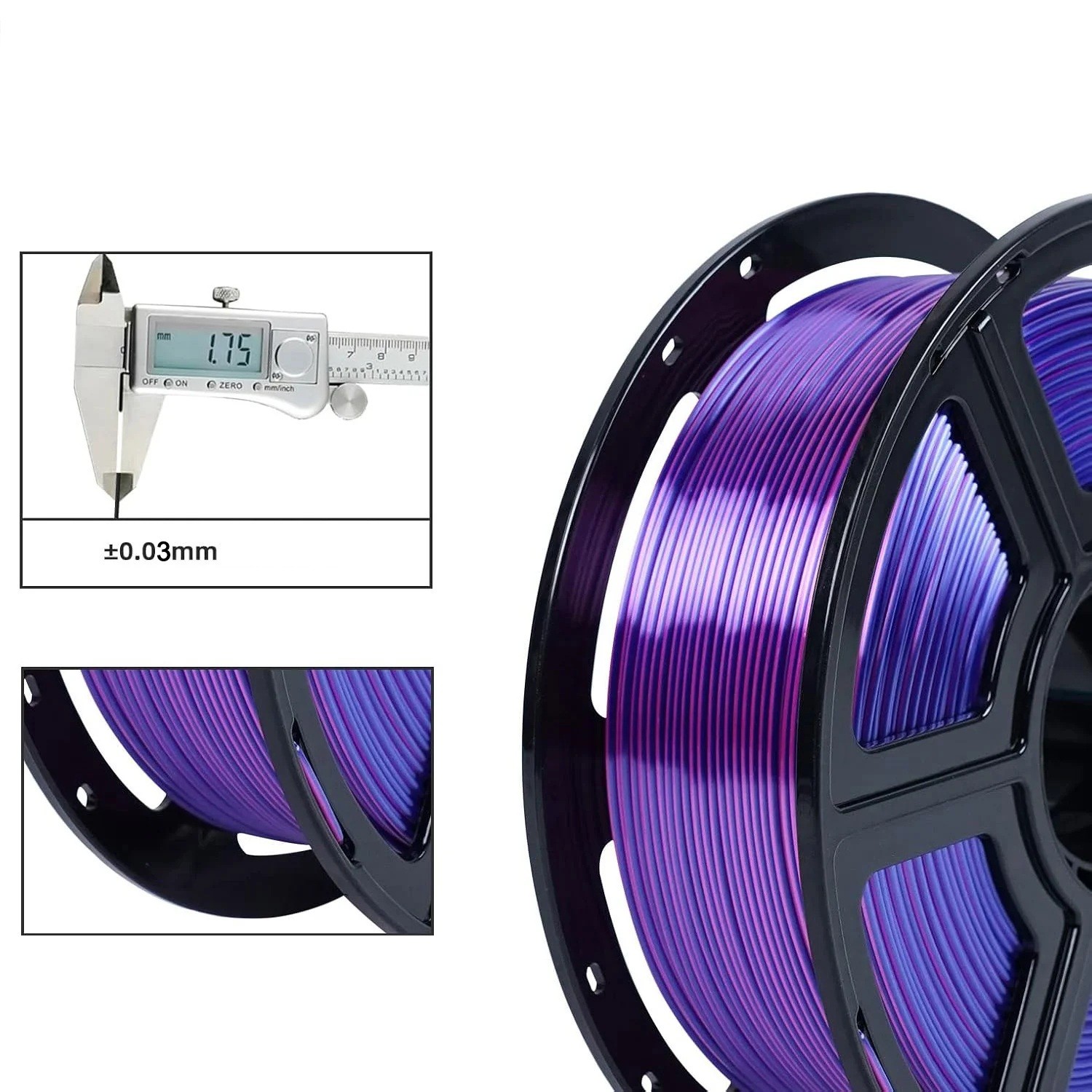 • Précision ±0,03 mm (1,75 mm) : diamètre uniforme pour une extrusion stable, moins de stries et des couches nettes.
