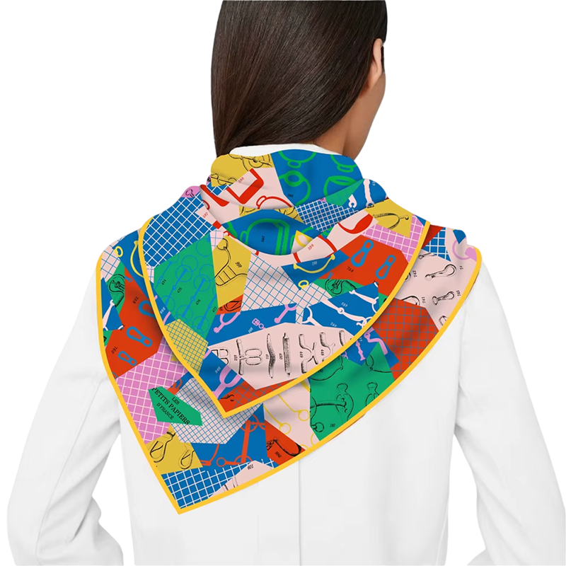 Foulard carré féminin joyeux Accessoire de mode multifonctionnel Style français pour la tête le cou les cheveux le corps Tendance pour les quatre saisons