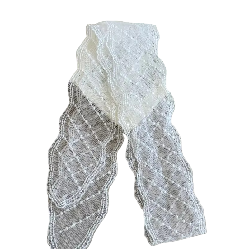 La délicatesse de la dentelle et le motif floral romantique créent un accessoire qui souligne immédiatement la féminité et l'élégance. Ce long foulard pour les cheveux est conçu pour avoir un aspect léger, aérien et naturel. Grâce à sa longueur, il permet différentes façons de nouer et de styliser selon l'occasion. Le matériau en dentelle est très léger et agréable au toucher. Dentelle florale avec un motif délicat donne au foulard une touche romantique et une structure élégante. Ce modèle est un choix idéal pour les femmes et les filles qui recherchent une coiffure d'été élégante avec un style artistique.