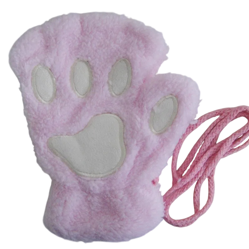 Gants de femme en tricot Taille universelle Peluche Polyester Gants d'hiver chauds avec motif de pattes de chat Gants doux et confortables