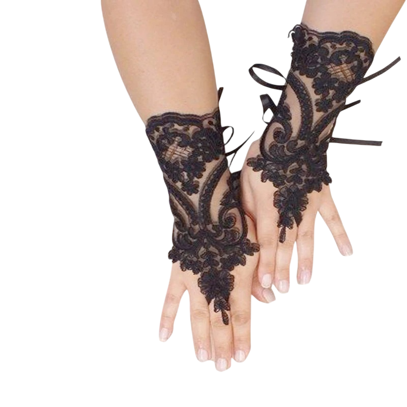 Gants en dentelle sans doigts pour femmes respirants 22×12 cm polyester noirs élégants gants pour occasions sociales et festives