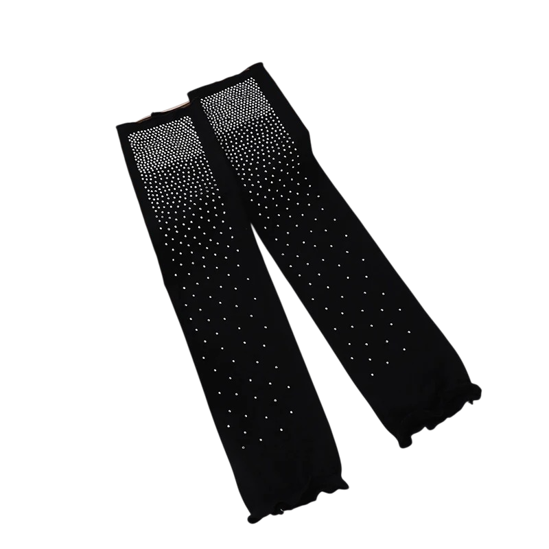 Gants longs sans doigts pour femmes avec paillettes en polyester respirant noirs pour occasions festives et soirées
