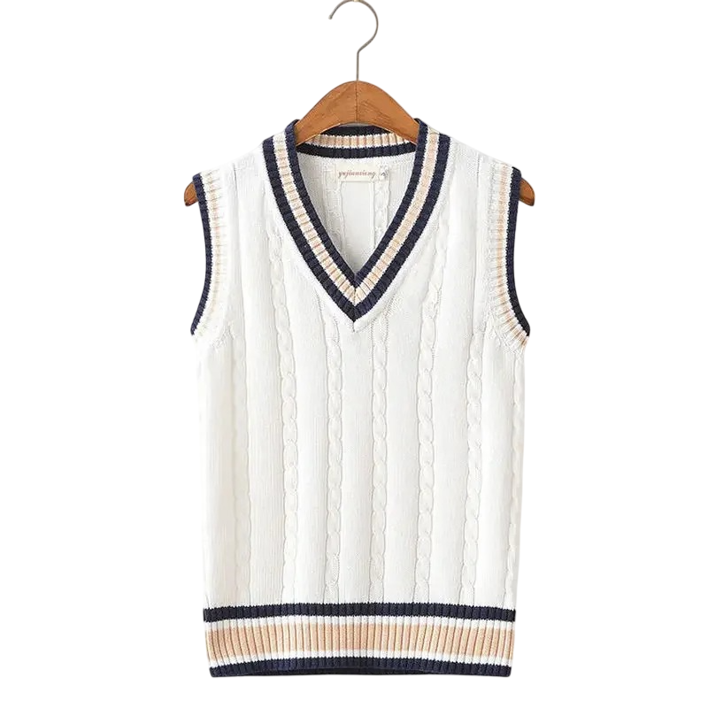 Le col en V est un élément typique de ce type de vêtement et permet de porter le gilet confortablement comme partie d'une tenue superposée.