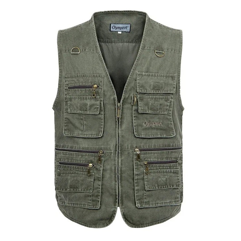 Gilet pour homme avec poches zippées et fermeture éclair en coton polyester pour le travail, la pêche, la randonnée et le port quotidien