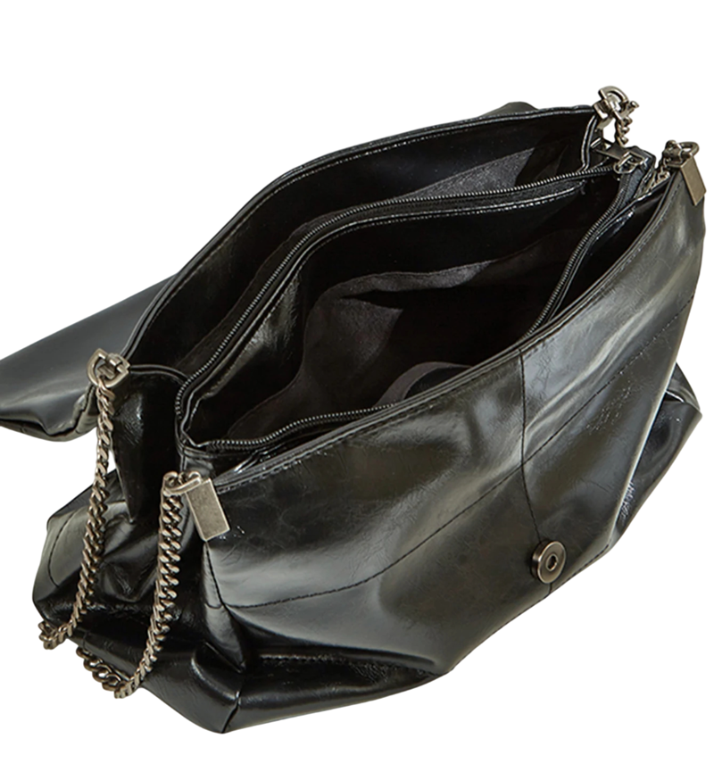 Sac à main spacieux au look élégant, avec sangle en métal et conception pratique adaptée à un usage quotidien même lors de journées prolongées. Description complète