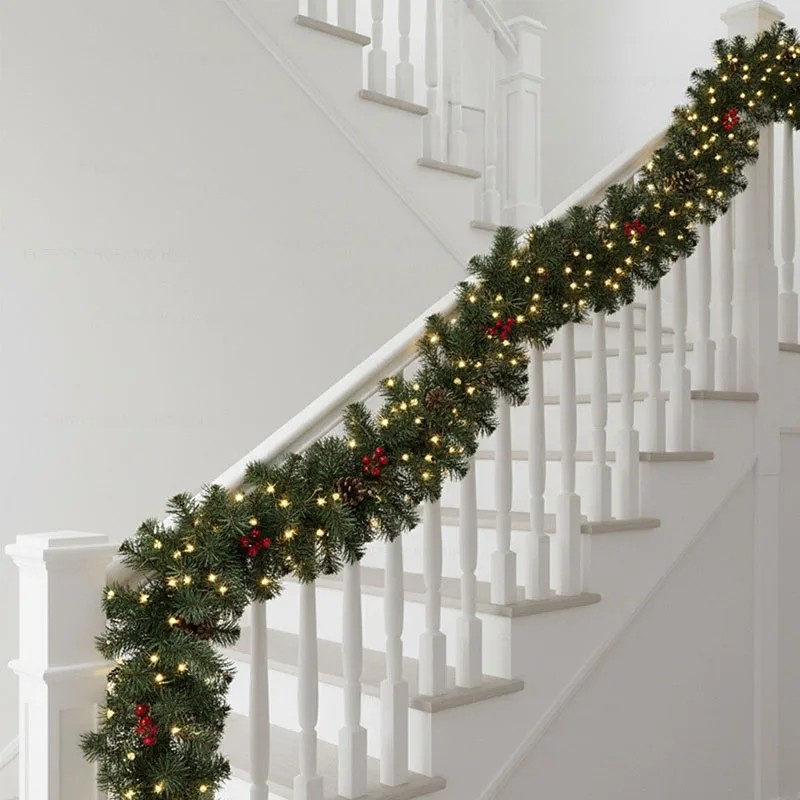 Guirlande de Noël 2,7 m avec lumières Décoration hivernale lumineuse pour portes, murs ou rampes Élégante décoration festive pour l'intérieur