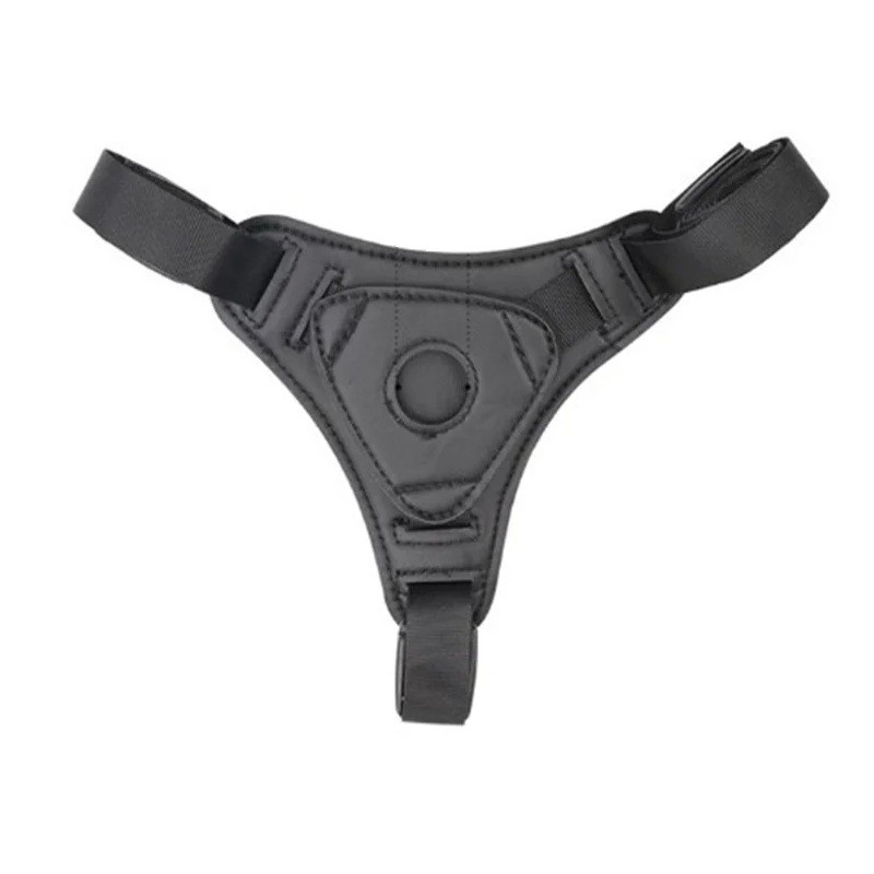Harnais strap-on de qualité en simili cuir premium avec sangles en tissu réglables. Ouverture de 23 mm pour une fixation solide du dildo. Description complète