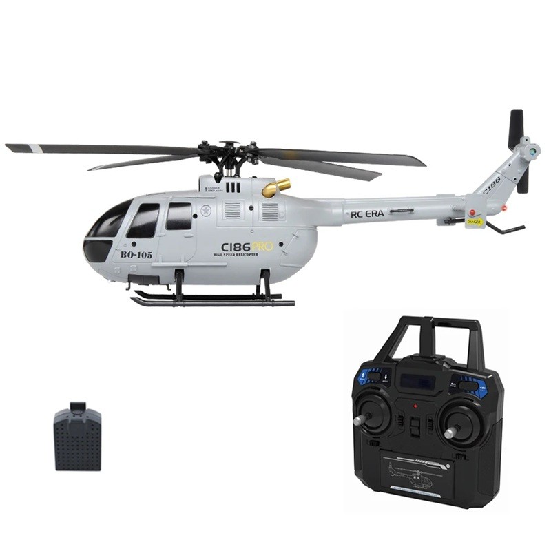 1× Hélicoptère RC C186 Pro B105, 1× émetteur 2.4G, 1× batterie LiPo, 1× chargeur USB, 1× jeu de pales principales, 1× pale de queue, 1× jeu d'outils, 1× manuel d'utilisation
