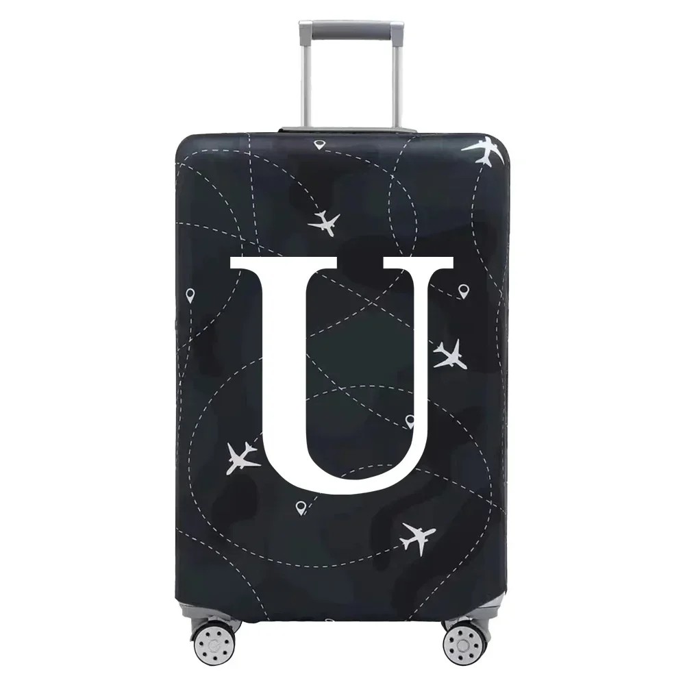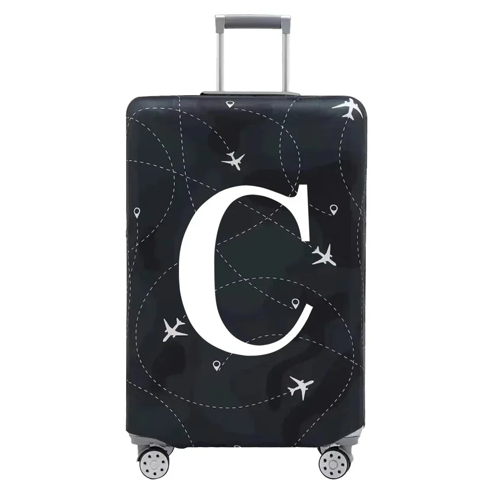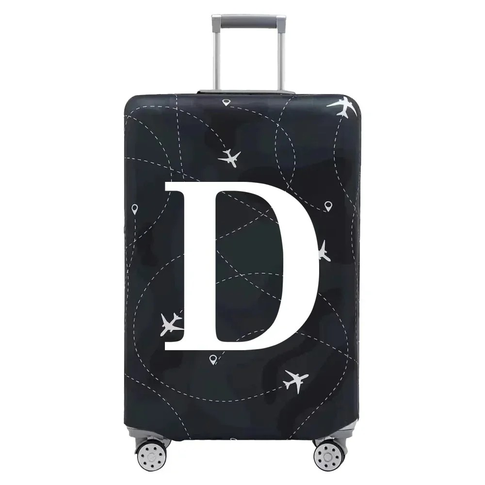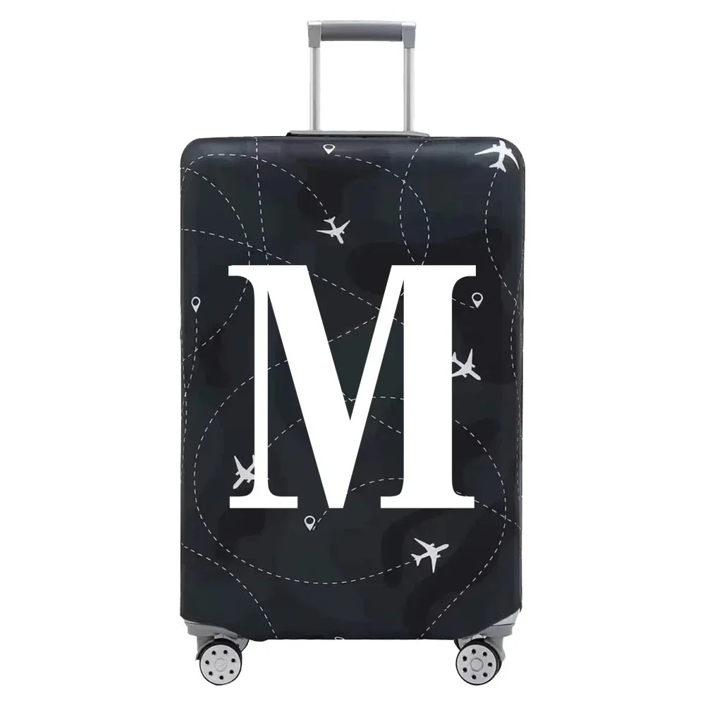Housse de protection extensible pour valise avec motif de lettres 48–53 cm tissu élastique housse noire pour bagage pour protéger la valise