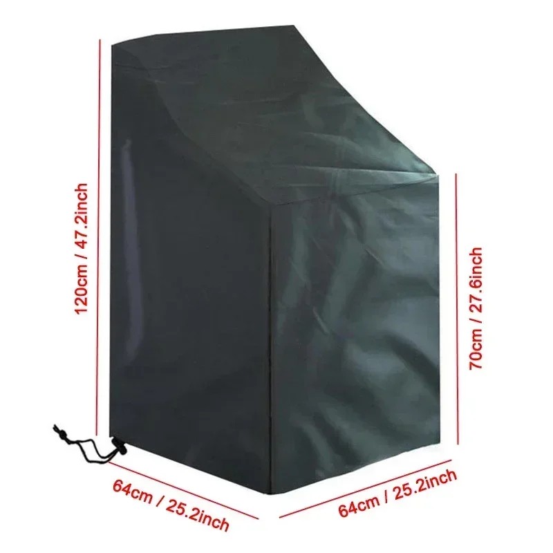 Housse de protection imperméable 64×64×70/120 cm pour chaises de jardin empilables Revêtement en polyester contre la pluie, la poussière et les UV Couverture noire