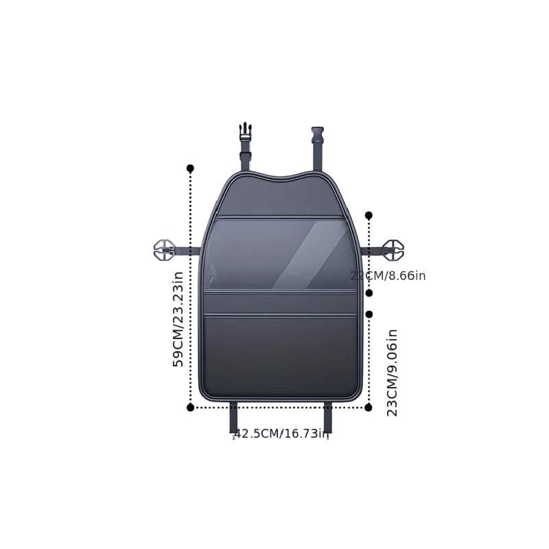Housse pour l'arrière de siège auto avec une grande poche transparente protège contre les éclaboussures, la saleté et l'usure. Surface facilement lavable et rangement pratique. Description complète