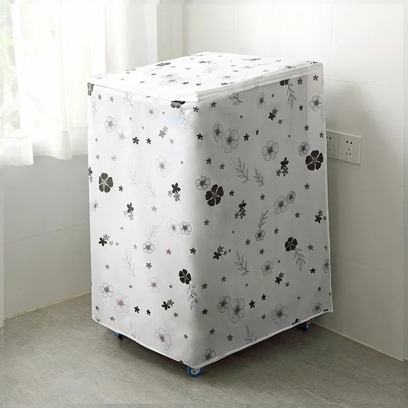 Housse de protection pour lave-linge à chargement par le haut 86 x 62 x 55 cm Motif fleurs noir et blanc Zip en haut et à l'avant PEVA housse contre la poussière et la saleté